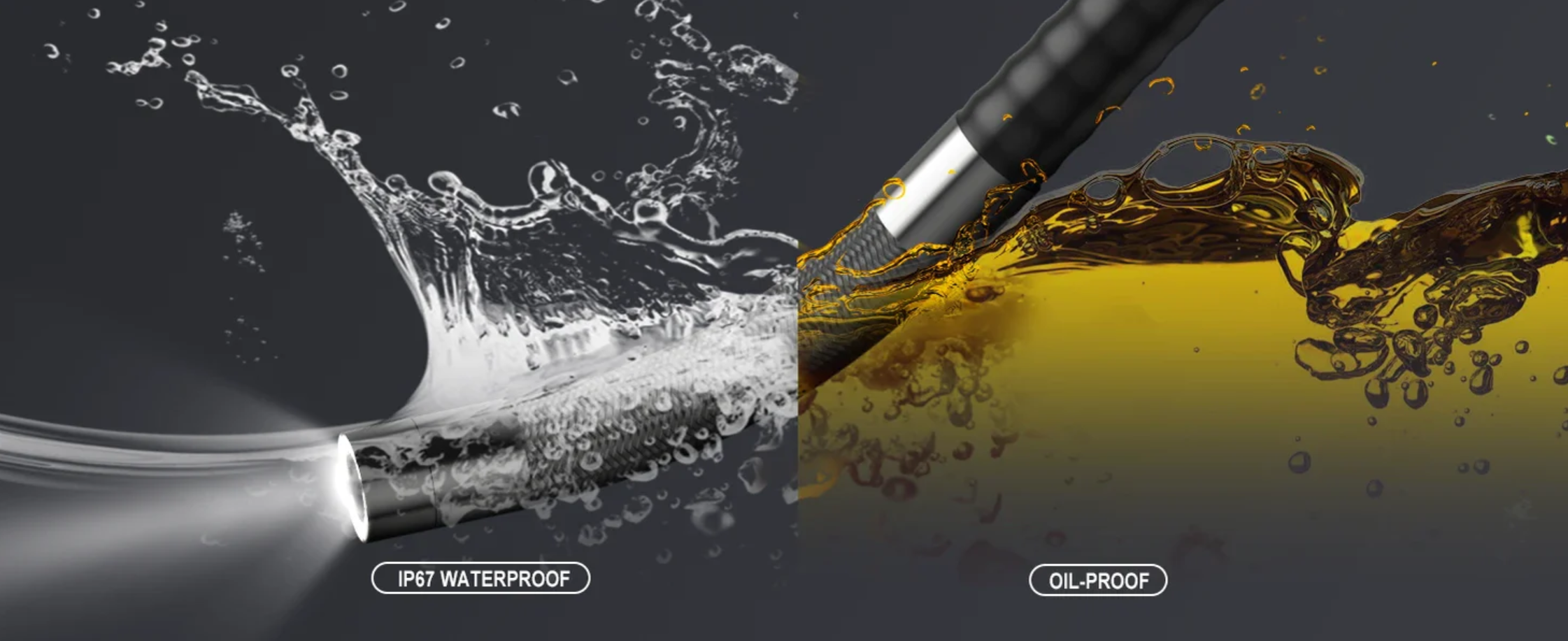 - IP67 waterproof and oilproof; designed for tough environments