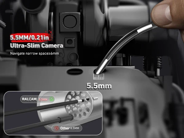 The Ralcam N505 2-way Borescope is ideal for automotive and industrial inspection. It has 2-way articulation, allowing for easy access to tight engine spaces. With its 5" IPS HD screen, you can see details clearly, and its 1280×720 resolution and bright LED lights ensure sharp images anytime.