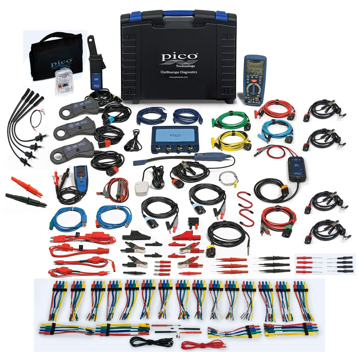 The kit has a comprehensive range of accessories suitable for EV diagnostics in addition to the standard set of leads, clips, and probes found in most PicoScope kits.